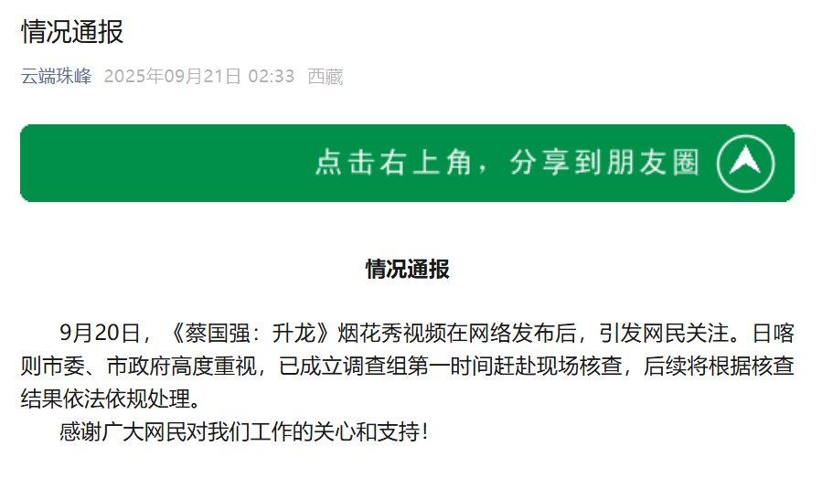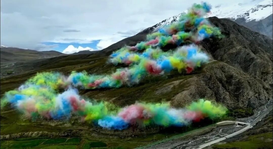 海拔5500米的喜马拉雅山脉江孜热龙地区,本该是寂静与圣洁之地。9月19日,这里却上演了一场名为《升龙》的烟花表演。